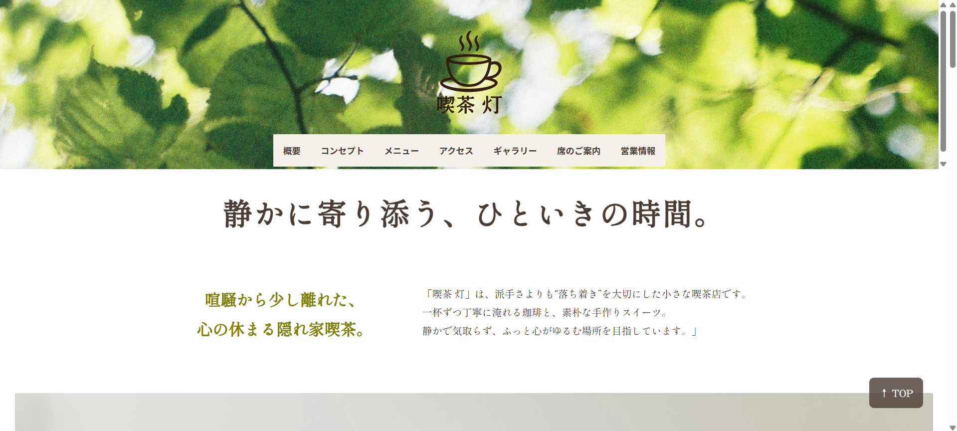 しずかに灯るような空間をイメージし、やわらかな色調と余白で“ひと息つける”雰囲気を表現しました。